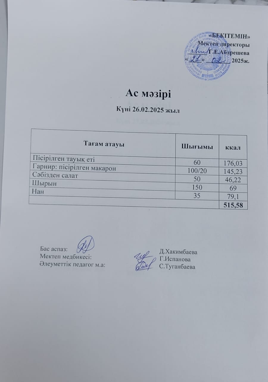 21 қаңтар 2025 Күндік ас мәзірі