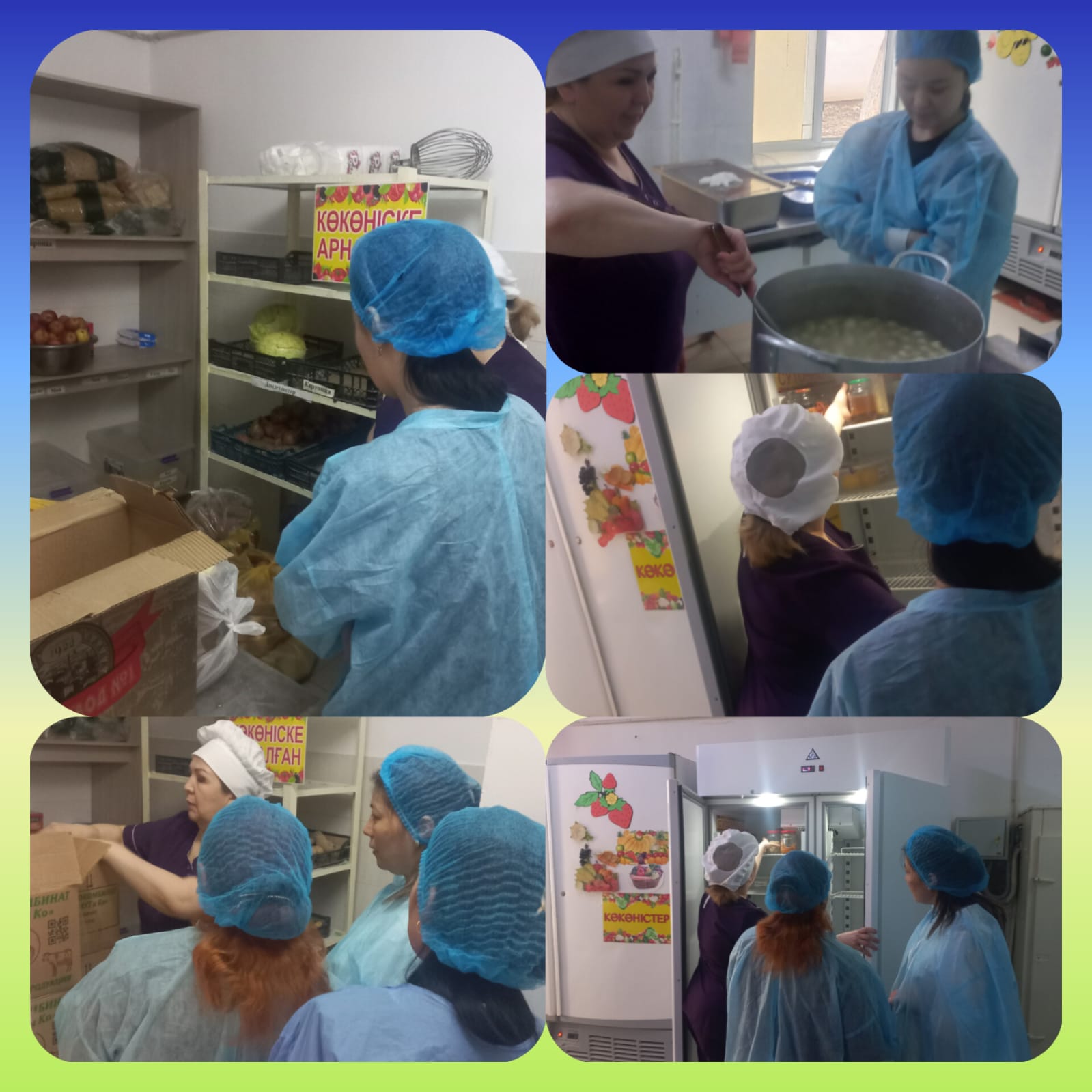 📍Асхана және ас үй ыдыстарының, асхана аспаптарының жай-күйін тексерді; Асханадағы дайын өнімдердің сапасы мен бағасы талапқа сай екендігі атап өтілді.