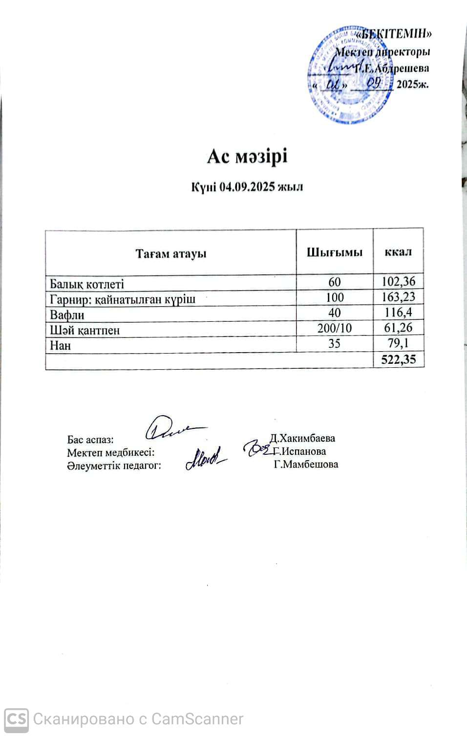05 наурыз 2025 Күндік ас мәзірі