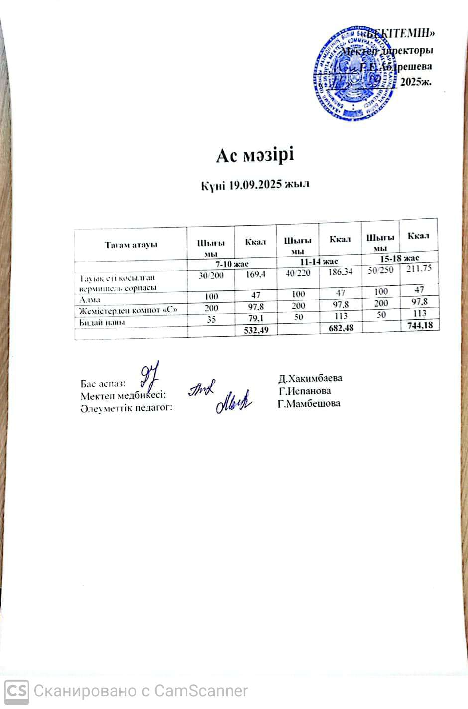 19 желтоқсан 2024 Күндік ас мәзірі