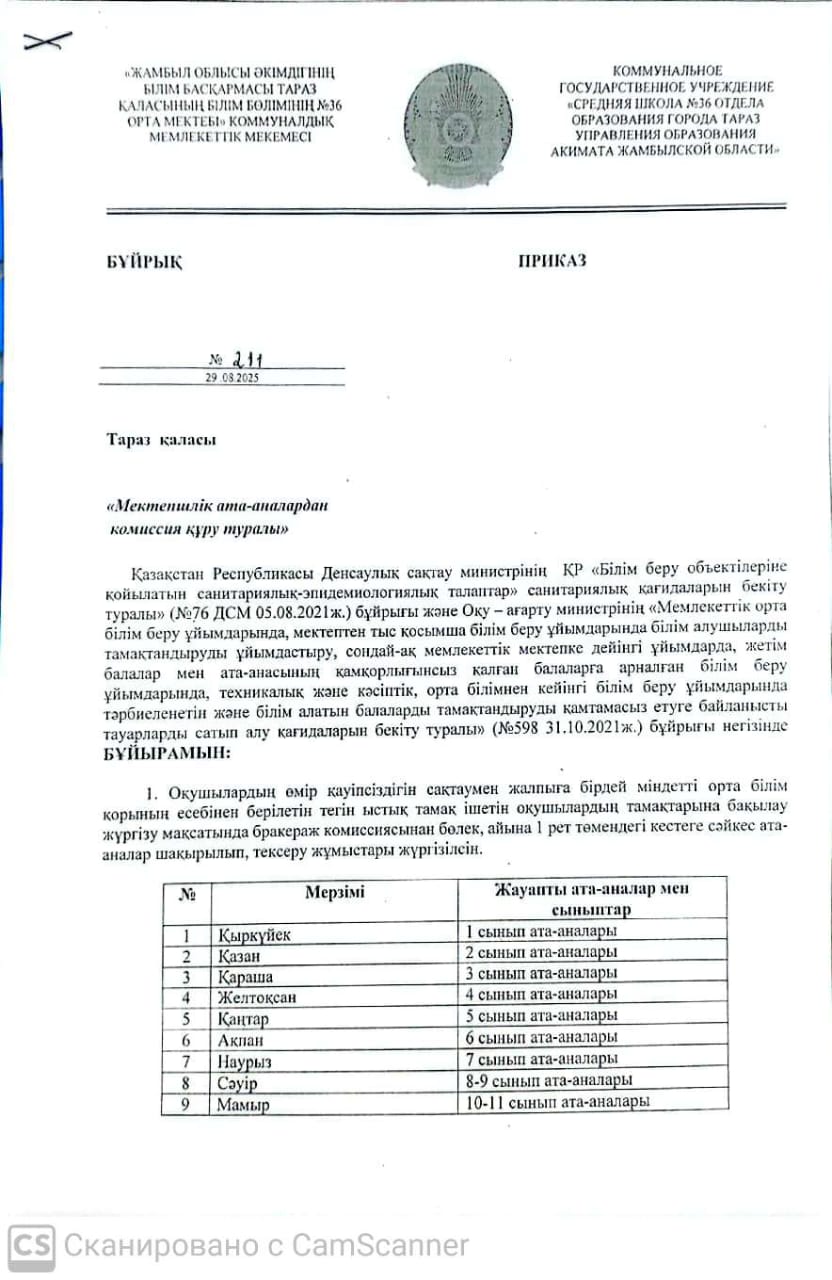 Мектепшілік ата-аналардан комиссия құрамы » СШ №36