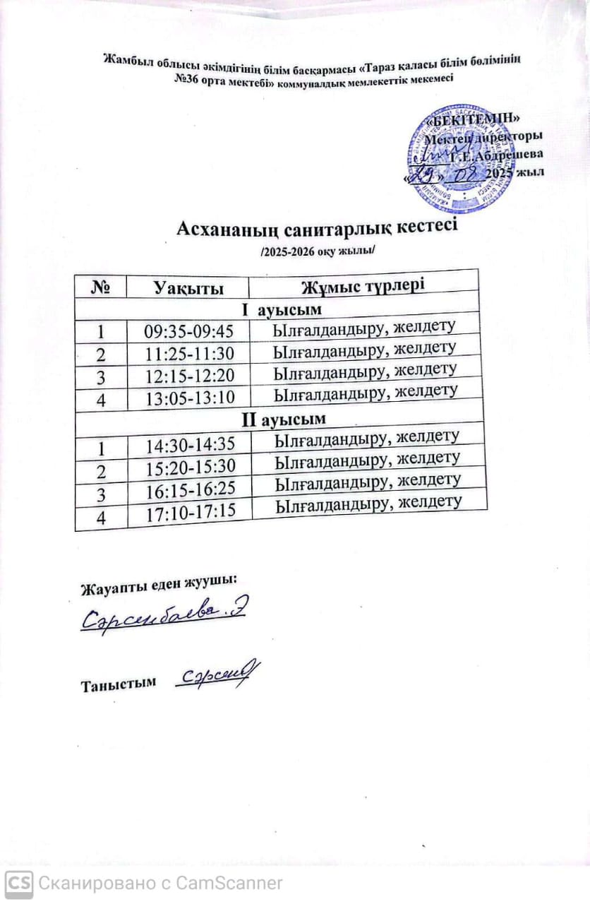 Асхананың санитарлық кестесі » СШ №36