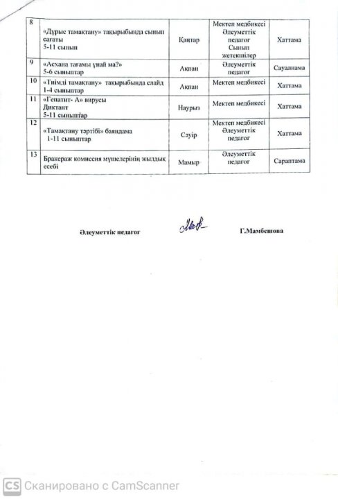 Бракераж комиссия мүшелерінің жылдық жоспары » СШ №36