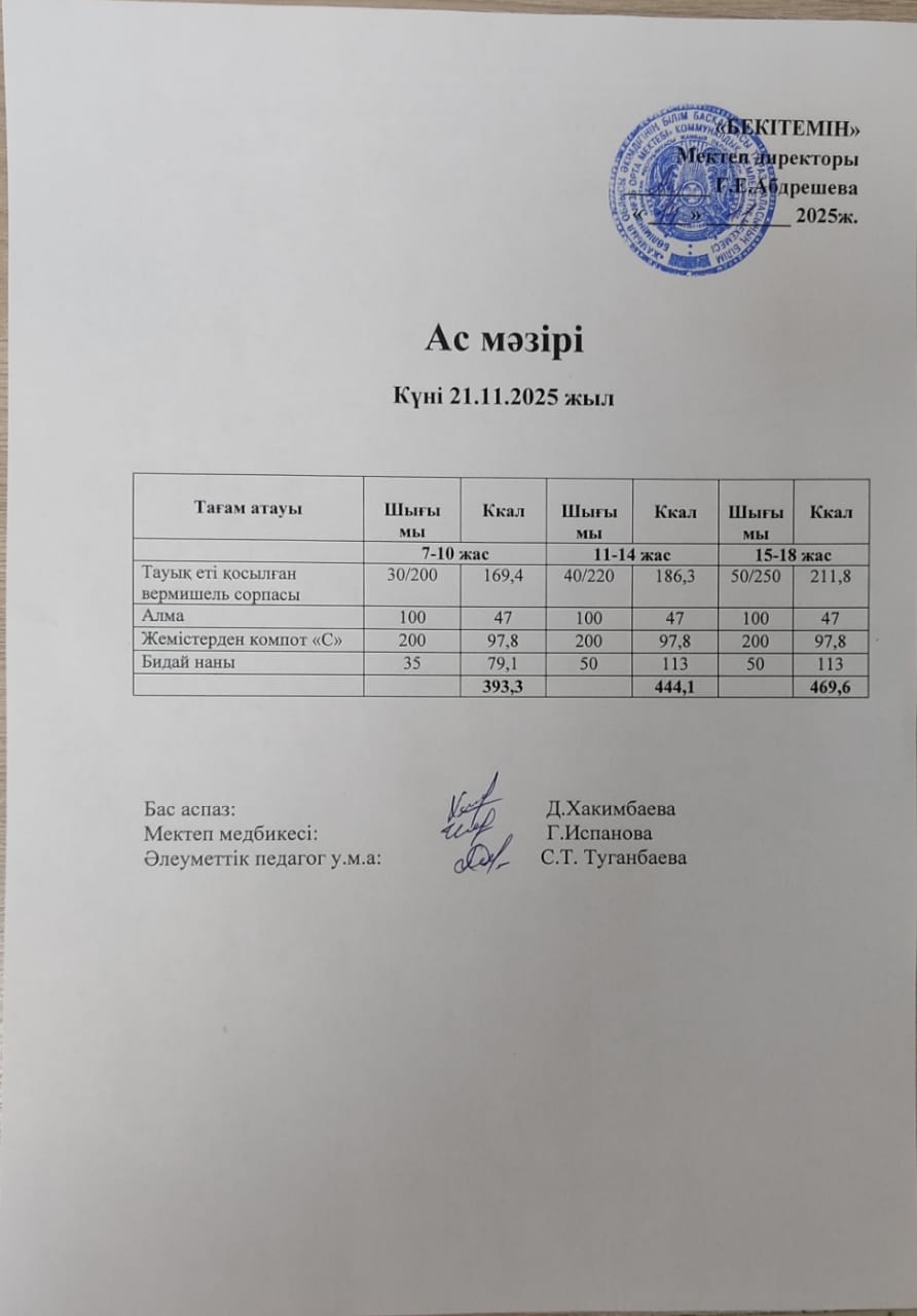 14 қараша 2025 Күндік ас мәзірі
