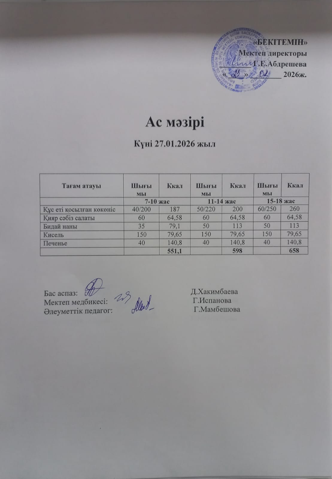 17 желтоқсан 2024 Күндік ас мәзірі