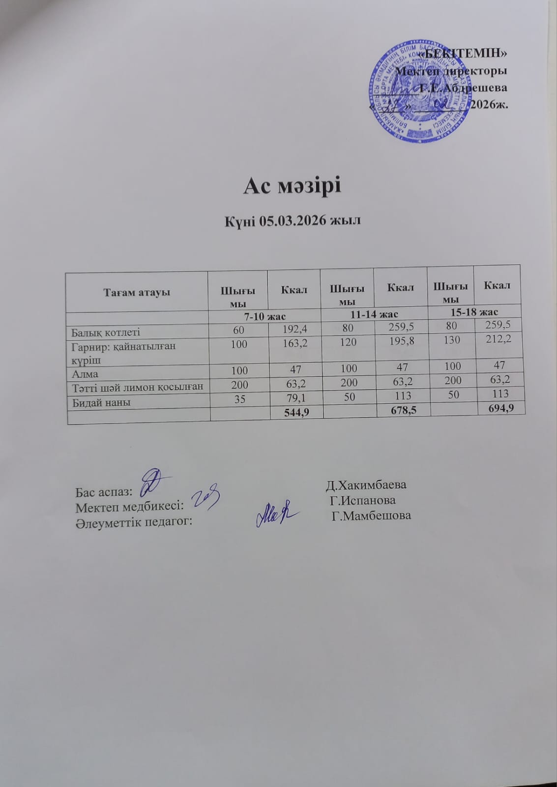 20 желтоқсан 2024 Күндік ас мәзірі